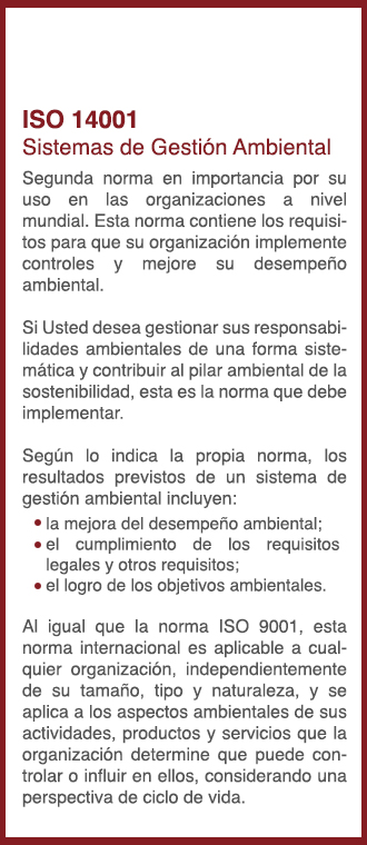 - Cursos de interpretación y para auditores internos (basado en ISO 19011) en el sistema de gestión ambiental.
